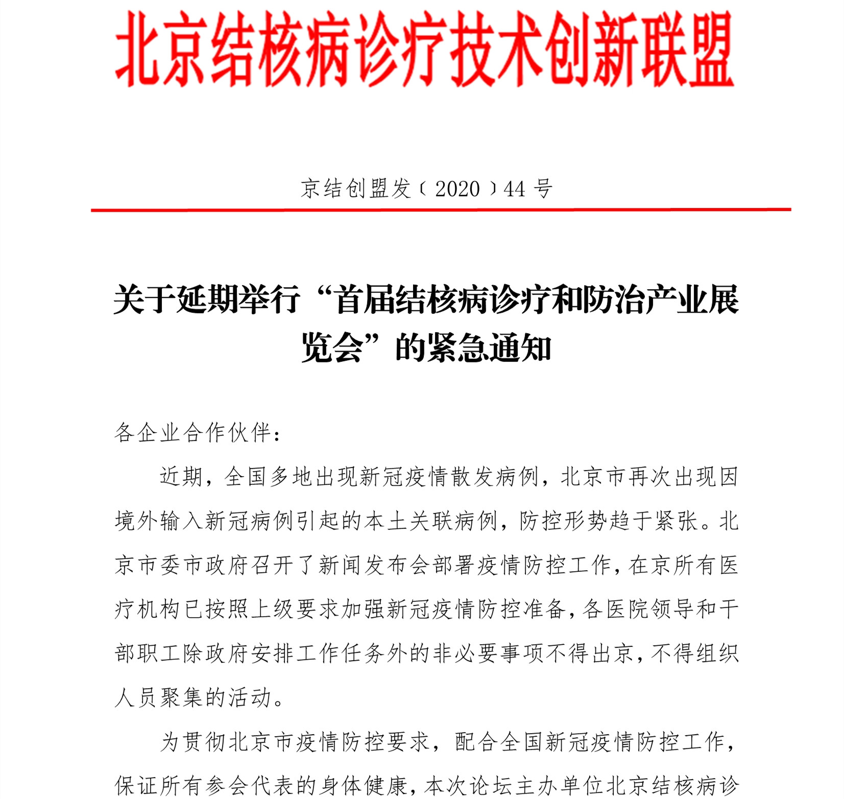 关于延期举行“首届结核病诊疗和防治产业展览会”的紧急通知