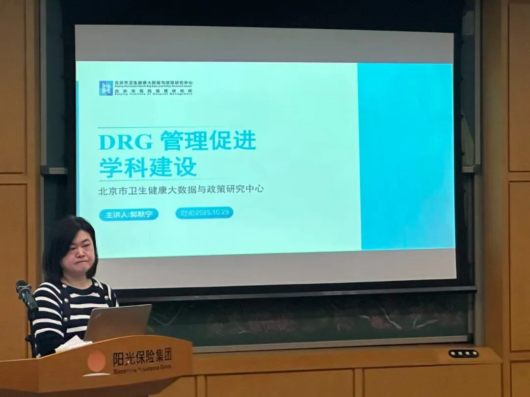 北京市卫生健康大数据与政策研究中心主任郭默宁在《DRG管理促进学科建设》报告中系统介绍了DRG支付的背景、分组逻辑及其在医院绩效考核中的应用。