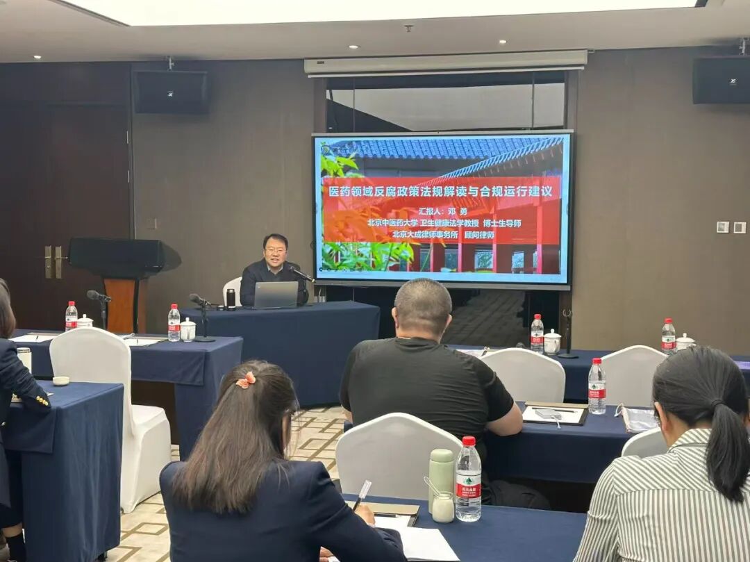 北京中医药大学邓勇教授作《医药腐败领域中的常见问题和解决方案》专题讲座,系统解读医药领域反腐败政策法规,并结合典型案例提出合规运行建议,强化参训人员的法律意识与风险防控能力。