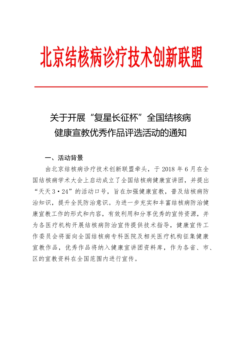 北京结核病诊疗技术创新联盟复星长征杯全国结核病宣教优秀作品征集通知.pdf