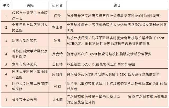 2017年北京结核病诊疗技术创新联盟暨 CTCTC 科研项目基金资助项目