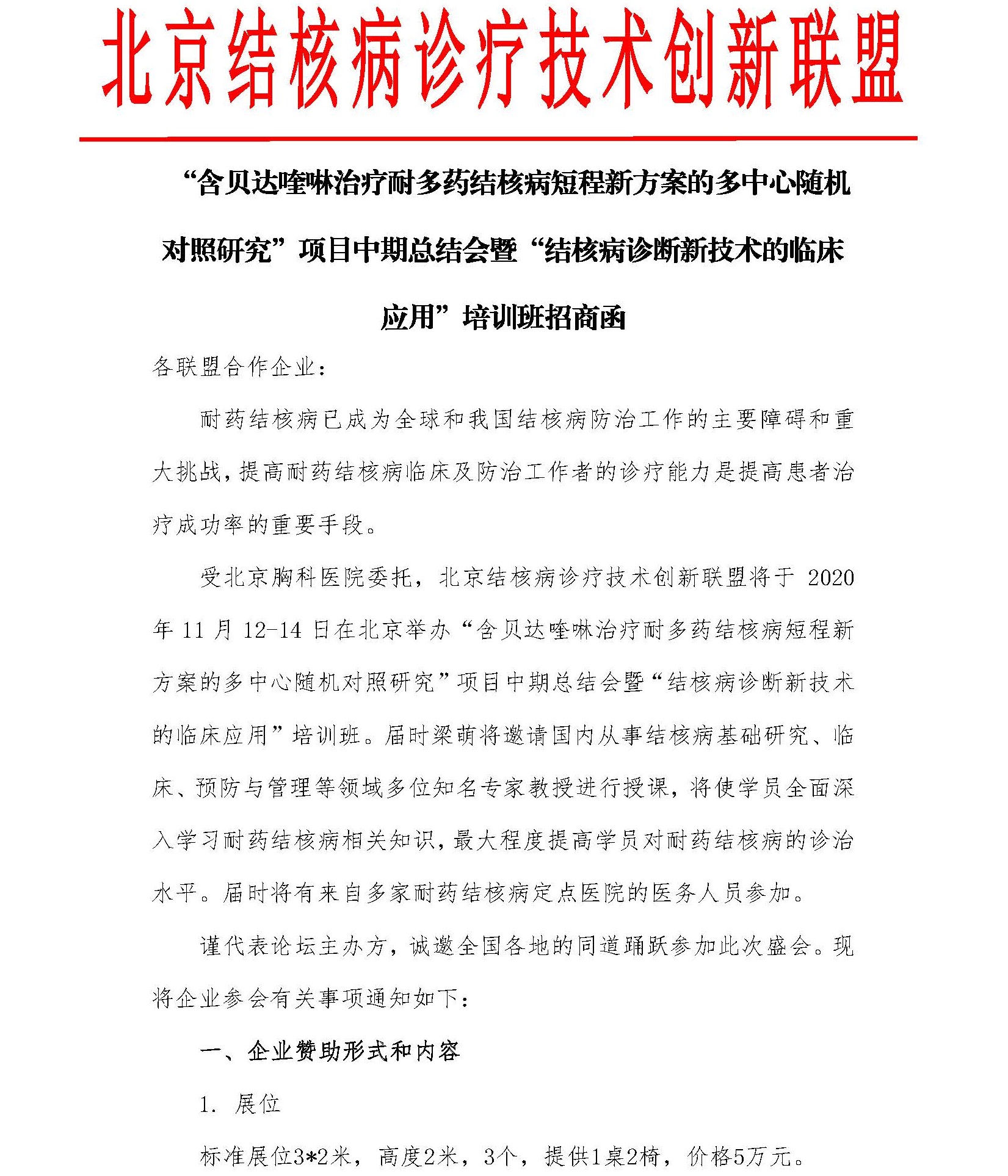 【招商函】“含贝达喹啉治疗耐多药结核病短程新方案的多中心随机对照研究”项目中期总结会暨“结核病诊断新技术的临床应用”培训班招商函
